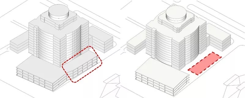 STEP2:停车楼部分切除,增加高层主楼消防扑救面。