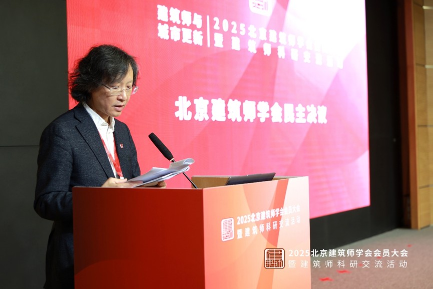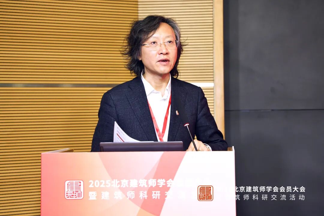 学会副理事长,全国工程勘察设计大师、清华大学建筑学院院长张利在视频致辞中转达了国际建筑师协会(UIA)主席Regina Gonthier对北京建筑师的问候,指出2025北京建筑师学会会员大会暨建筑师科研交流活动是迈向2029年世界建筑师大会的重要思想集结,他强调国际建协坚守沟通与融合的使命,期待中国新型城镇化智慧为全球建筑界提供支撑。张利大师作为国际建协副主席与北京建筑师一员,他致敬同仁们在技术变革与可持续挑战中的责任担当与广阔视野,称赞北京建筑师群体的格局与自豪感,并预祝大会圆满成功。