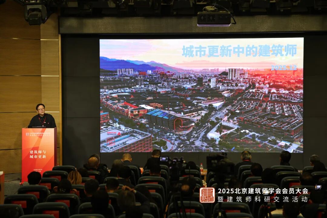 北京建筑师学会理事长、中国工程院院士崔愷进行了主题为《城市更新中的建筑师》主旨发言,他指出,建筑师应从城市研究出发,深入城市体检、认知、文脉与生态等多个维度,全面参与城市策划,关注日常生活、商业活力、文旅体验与产业升级,将设计价值融入街区更新、遗产激活、旧房改造和场所营造之中,以可持续理念推动文脉传承、利旧维新、节能环保与开放共享,并以“陪伴式”服务心态全程参与从设计到管理的建设全过程;他通过重庆两江四岸、广州琶洲CBD等典型案例,倡导建筑师积极跨界,主动融入市政工程,为城市更新提供系统性支持。
