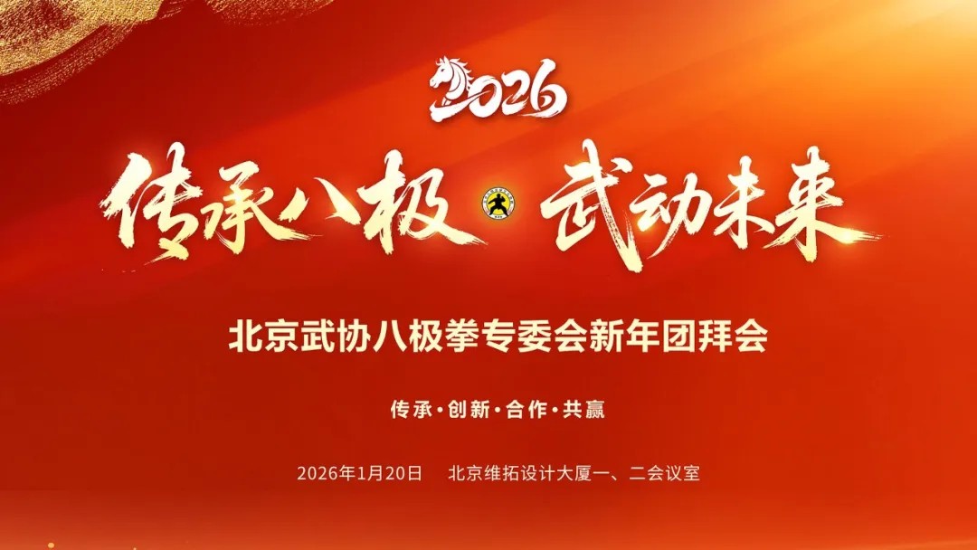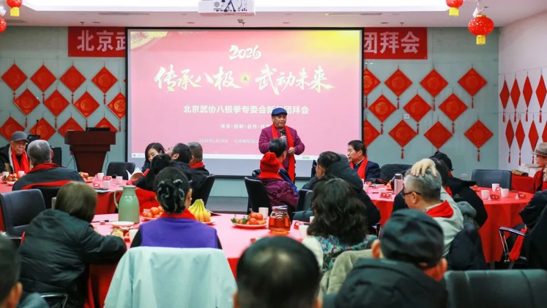 2026年1月20日,北京武协八极拳专委会在北京维拓设计大厦举办新年团拜会。武术界前辈、长期关心指导八极拳发展的各界领导、武术界同仁欢聚一堂,旨在回顾过往、展望未来,共商八极拳传承与发展大计。