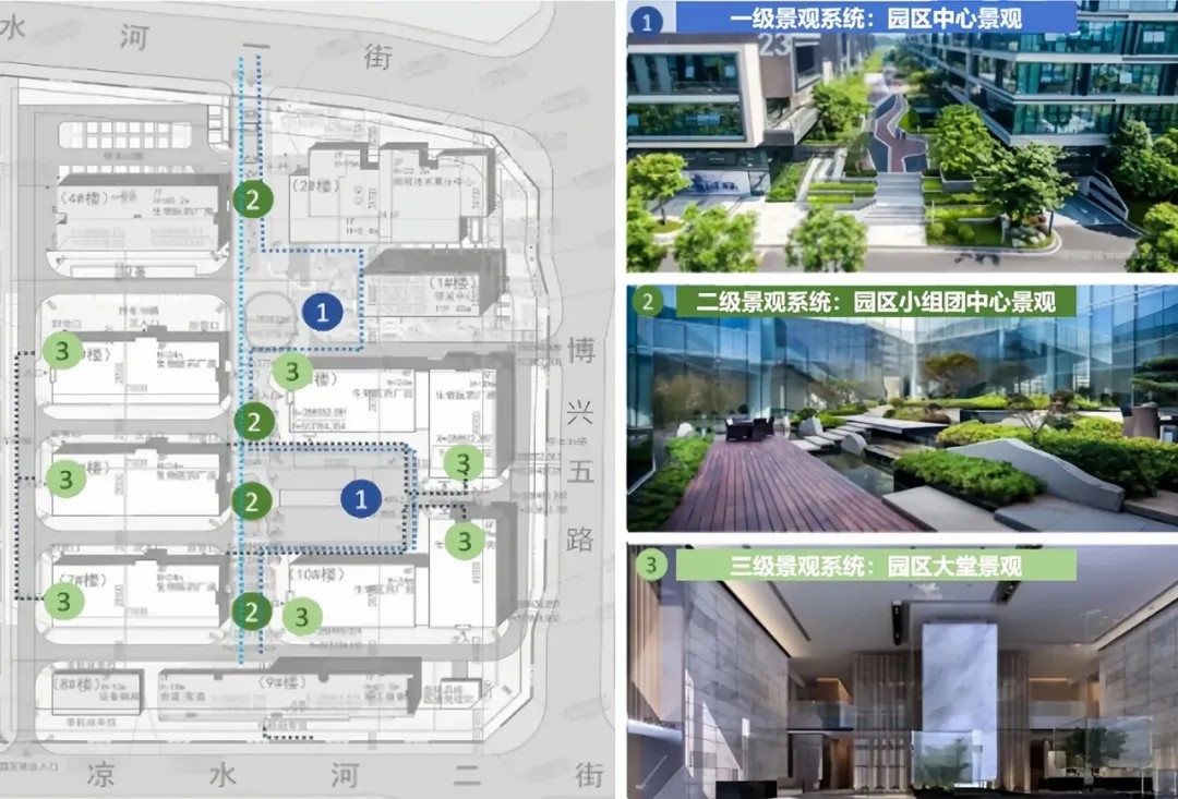 通过多层次绿化、休憩空间,增强园区生态属性,提升员工幸福感与工作效率。