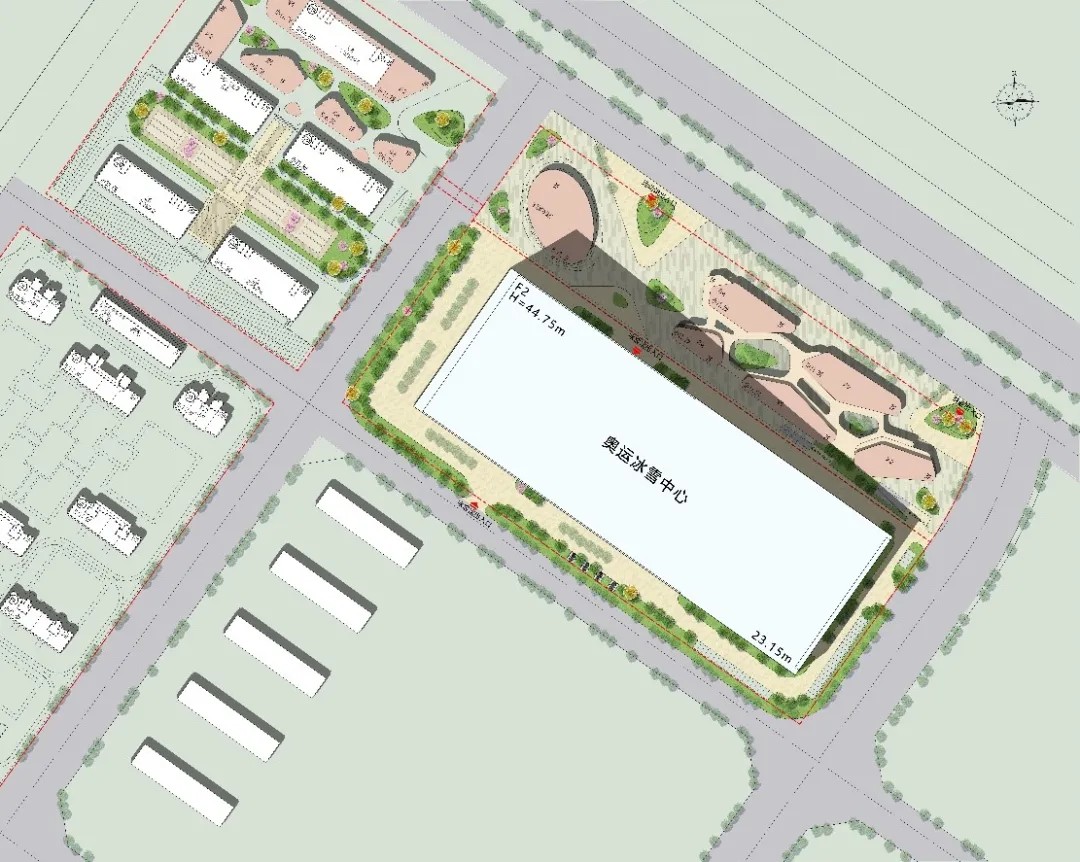 项目位于包头市新都市区,用地相对局促,用地条件长305米、宽122米。针对冰雪两馆的建设诉求,项目用地及周边建筑的规划情况,设计团队对场地进行了充分的分析和挖掘,通过高效利用建筑空间,从而实现节地、节材、节能的目标,为冰雪建筑可持续设计起到了示范作用。