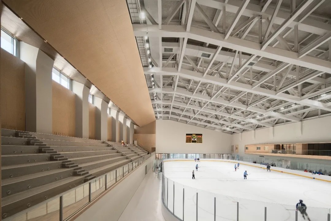 冰球馆设有 30mx60m 的国际标准冰球场,880 座观众席,满足国际冰联乙级赛事要求,日常满足冰球俱乐部活动要求。