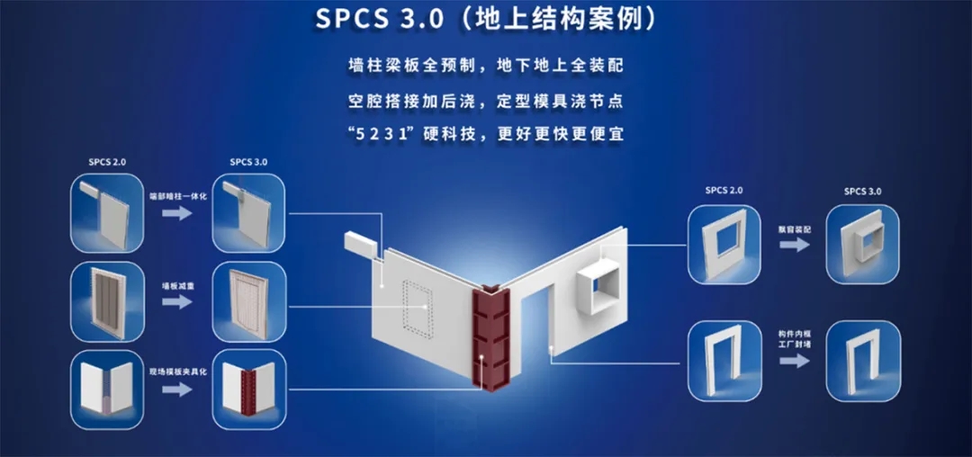 SPCS由 三一筑工 研发的新型装配式体系,具有工业化智能建造的产品典型特征,整体性好,可以解决目前国内装配式建造过程中的诸多痛点,如构件出筋过多引起的安装困难,套筒灌浆关键连接质量难控等等。