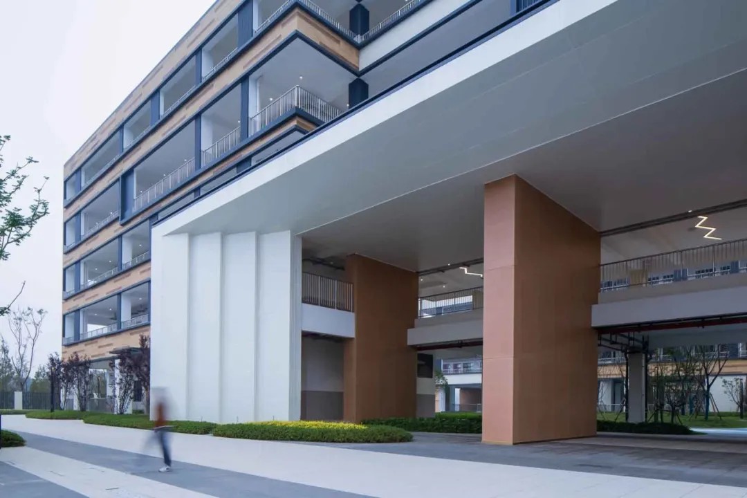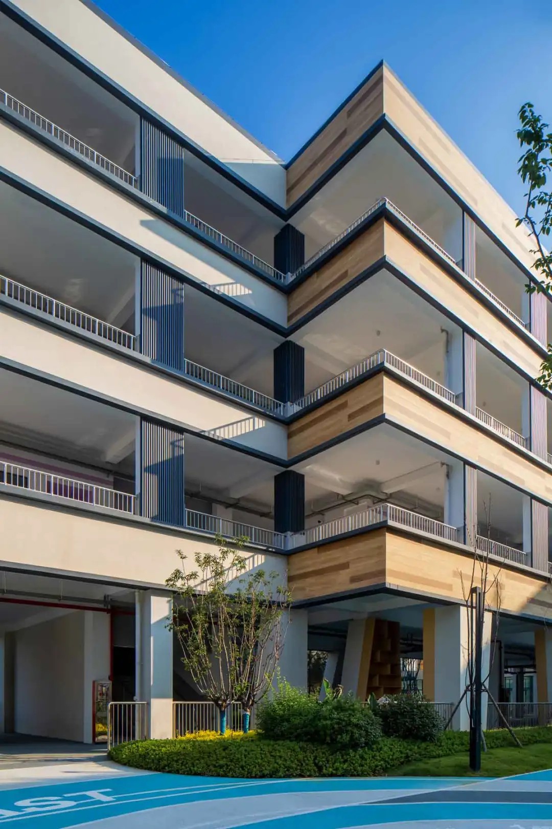 “得景无拘远近,佳则收之”。场地西侧的云湖景观带是项目重要的景观资源,设计通过将《园冶》中的“借景”理念演化为立体观景设计。场地依托原始地形高差,于教学楼各层设计观湖平台,与湖面之间形成相对高度为4—12米的多个垂直景观界面,将湖景渗透入校园空间,使不同标高空间呈现差异化的湖景画卷,构建多层次的观景系统,并通过“移步易景”的空间序列,培养学生的观察能力与空间认知能力。