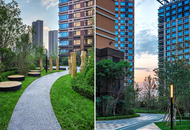 项目总建筑面积45.6万平方米,建筑设计融合现代与自然,采用围合式院落和高低错落的天际线,创造丰富的城市风貌。外立面使用暖色调并结合不同细节和颜色,使每栋楼独具特色。项目采用双面叠合剪力墙结构,提高施工效率并确保建筑质量。这些设计使项目既美观又实用,成为现代化居住社区的典范。
