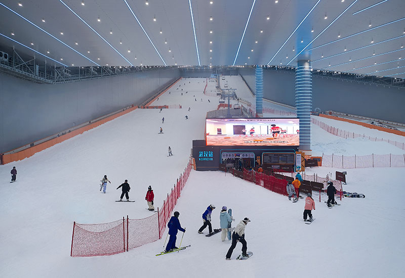 甘露山国际滑雪场位于武汉市黄陂区,毗邻木兰古镇,项目规模17.8万平方米,是华中地区最大的室内滑雪场,现已成为华中地区新的地标。