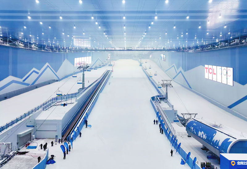 项目位于深圳前海湾中心地带,紧邻深圳国际会展中心及国际空港,属大湾区“黄金内湾”核心区。 设计定位为全球规模最大、纬度最低的室内滑雪场,打造“滑雪+体育+潮流”多维业态,已获吉尼斯世界纪录认证。 拥有5条国际雪联(FIS)认证的赛事级雪道,最大垂直落差83米,最长单道463米,坡度达18度。
