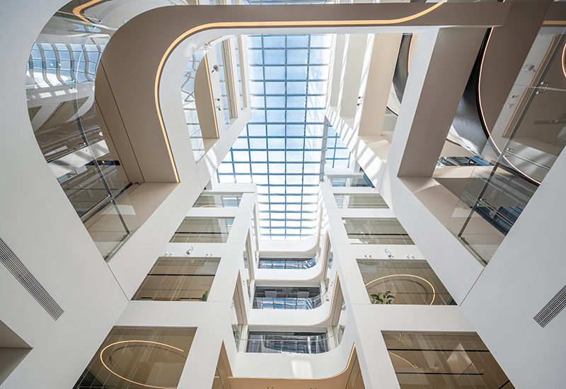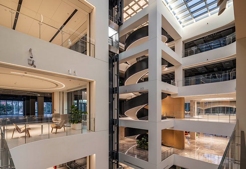 项目规模:30,000平方米 打破票房天花板《哪吒2》的光线传媒新总部独栋 以“城市更新+创意办公”为核心,通过十字形采光中庭、双曲面玻璃幕墙等设计,将老旧商超改造为生态智慧办公空间; 项目保留50%原结构,植入立体交通与共享社交区,解决大进深采光难题;渐变铝合金立面兼顾隐私与艺术感,南向环形露台衔接城市绿景; 项目以低干预策略实现功能升级,成为连接亚奥与望京商务圈的产业焕新标杆,展现“建筑重生”与文化产业发展的深度协同。