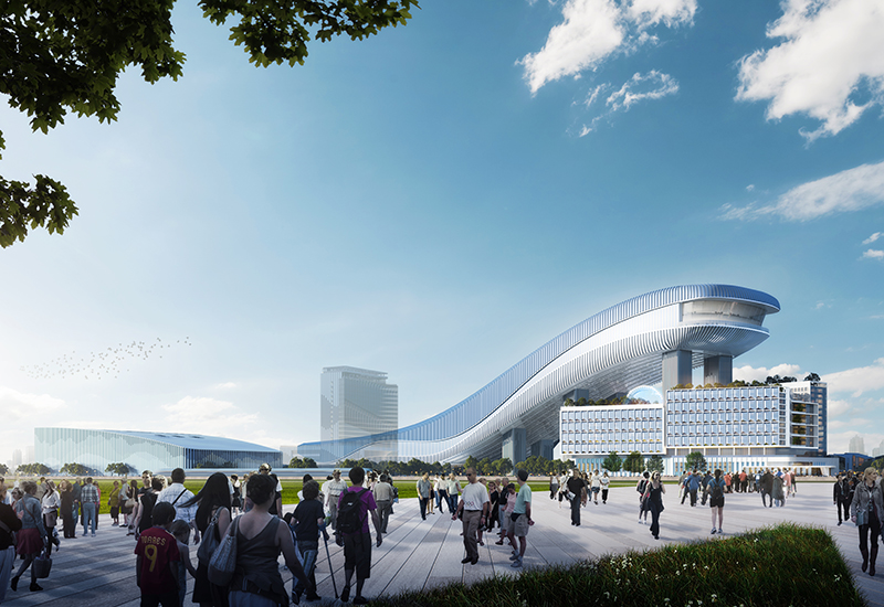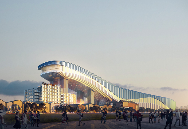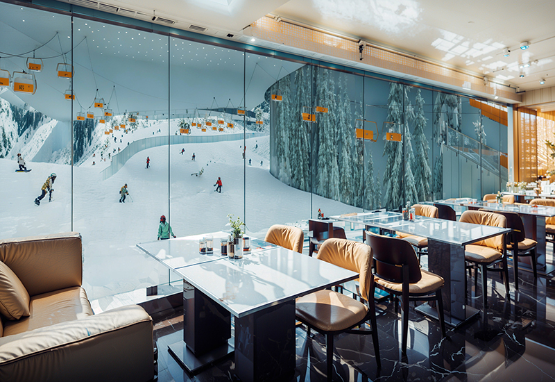 项目以“五项世界之最”为核心,打造全球最大室内滑雪场。设计融合传统如意造型与现代雪馆空间,通过云纹肌理展现东方文化。